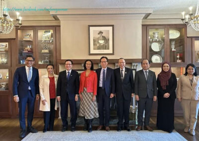 The Meeting chaired by Ambassador Kallayana Vipattipumiprates of Thailand discussed and exchanged views on programme of events to be carried out during Thailand’s Chairmanship including Working Lunches with Senators, Members of Parliament and Ambassadors from ASEAN’s Dialogue Partners in Ottawa. The Meeting was followed by a Working Lunch with The Hon. Senator Yuen Pau Woo and The Hon. Senator Flordeliz (Gigi) Osler. During the Working Lunch, the ASEAN Heads of Mission and the Senators exchanged views on promoting the status of the Canada-ASEAN Inter-Parliamentary Friendship Group to the level of an Association