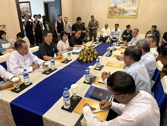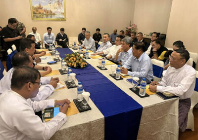 Deputy Prime Minister and Union Minister of the Ministry of Foreign Affairs of Myanmar, together with the Foreign Ministers of Malaysia and Thailand, met with the Members of Myanmar Disaster Management Committee and the Executive Director of the ASEAN Coordinating Centre for Humanitarian Assistance on Disaster Management (AHA Centre) at the Jasmine Hotel, Nay Pyi Taw on 5th April 2025.