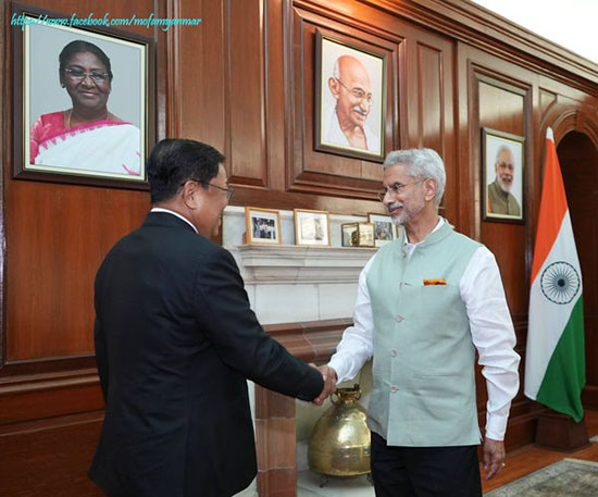 Furthermore, the Deputy Prime Minister and Union Minister for Foreign Affairs U Than Swe, accompanied by the Myanmar Ambassador to India U Moe Kyaw Aung and the Myanmar delegation, met Dr. S. Jaishankar, Minister of External Affairs of India at 3:30 pm on 26 July 2024 at the Ministry of External Affairs in New Delhi.