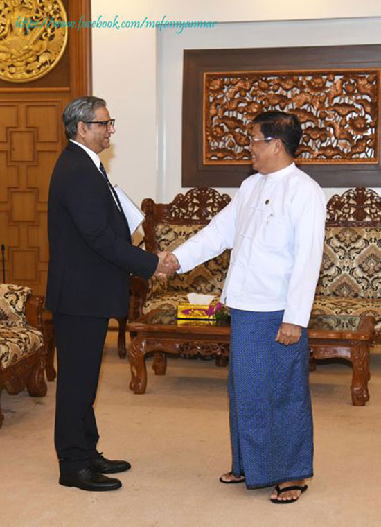 U Than Swe, Deputy Prime Minister and Union Minister for Foreign Affairs receives Mr. Sajjad Mohammad Sajid, Head of Office of the United Nations Office for the Coordination of Humanitarian Affairs