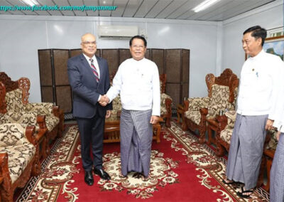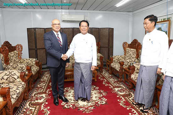 Deputy Prime Minister and Union Minister for Foreign Affairs H.E. U Than Swe received Ambassador of Bangladesh to Myanmar H.E. Dr. Md. Monwar Hossain at the Ministry of Foreign Affairs in Nay Pyi Taw on 21 July 2025 at 1700 hrs.