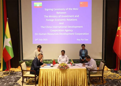 Following the meeting, the Union Minister for Investment and Foreign Economic Relations and the Chairman of the CIDCA signed the Memorandum of Understanding (MoU) on Human Resources Development. Moreover, the Union Minister for Health and the Chairman of the CIDCA signed the Letter of Exchange for Feasibility Study on the China-Myanmar Friendship State-of-the-Art Specialist Hospital Project.