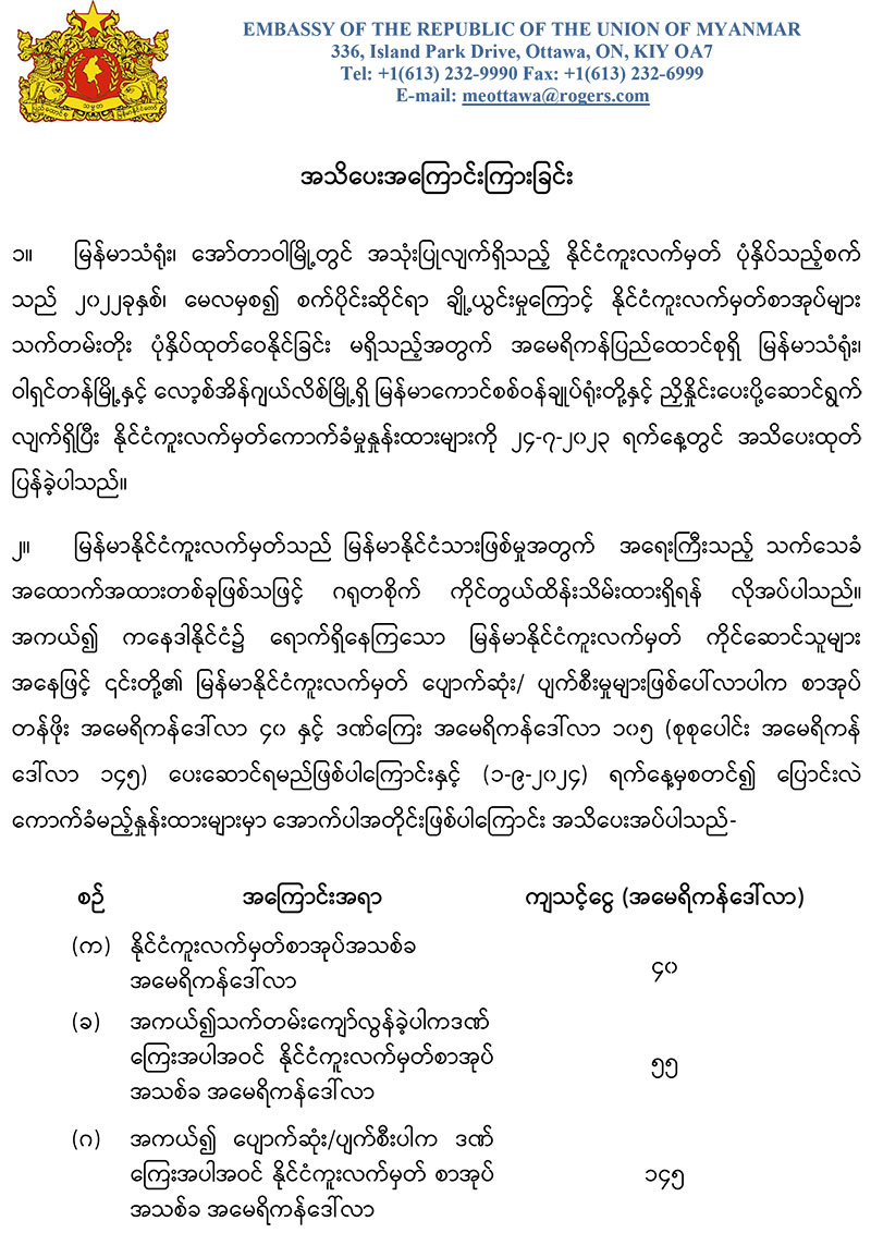 © Copyright 2025 by EMBASSY OF THE REPUBLIC OF THE UNION OF MYANMAR, OTTAWA (CANADA).