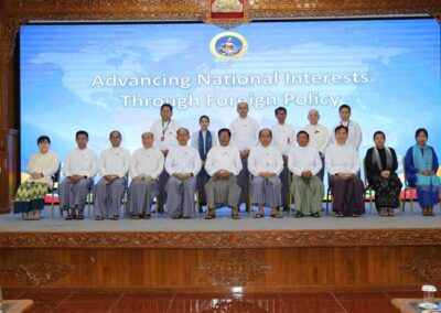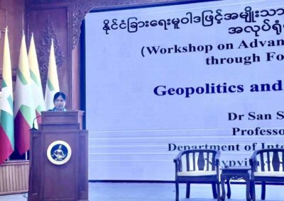 The workshop was organized to enable officials from the Ministry of Foreign Affairs and related Ministries to gain a deeper understanding of contemporary geopolitical lanscapes, regional and international developments evolving alongside rapid technological advancements, the domestic realities, as well as the current challenges and opportunities of the country. It also aimed to identify effective measures to protect and promote Myanmar’s national interests in the international context.