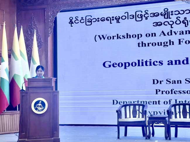 နိုင်ငံခြားရေးမူဝါဒဖြင့် အမျိုးသားအကျိုးစီးပွားကိုဖော်ဆောင်ခြင်း (Advancing National Interests through Foreign Policy) အလုပ်ရုံဆွေးနွေးပွဲကျင်းပ
