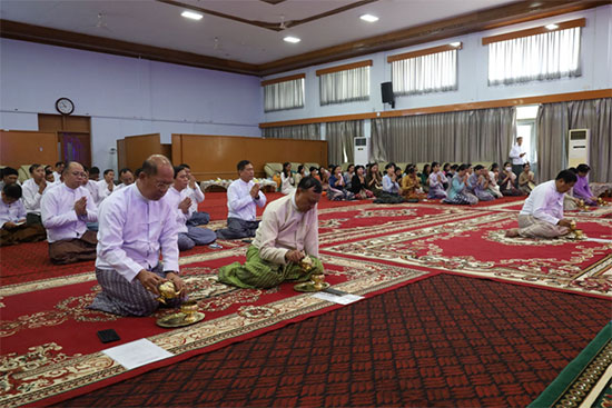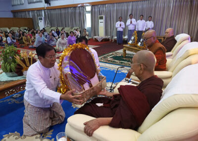 နိုင်ငံခြားရေးဝန်ကြီးဌာန ဝန်ထမ်းမိသားစုများ၏ (၁၉) ကြိမ်မြောက် ကထိန်လျာသင်္ကန်း ဆက်ကပ်လှူဒါန်းခြင်း အခမ်းအနားကျင်းပ