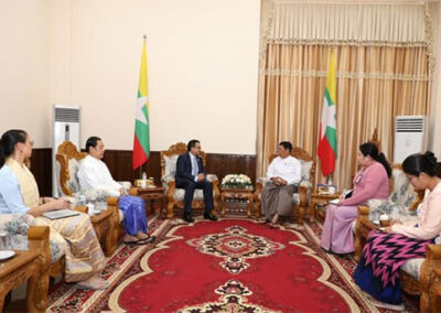 During the meeting, they exchanged views on matters related to the ongoing and further assistances of IFRC in close coordination with MRCS for the rehabilitation activities following the Mandalay Earthquake.