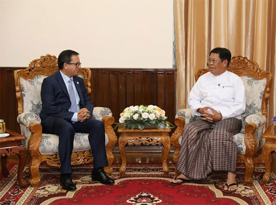H.E. U Than Swe, Union Minister for Foreign Affairs receives Mr. Milton Xavier Castellanos Mosquera, Under-Secretary-General of IFRC for National Society Development and Coordination