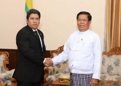 H.E. U Than Swe, Union Minister for Foreign Affairs of the Republic of the Union of Myanmar received H.E. Mr. Segundo Martin Calero Escorcia, Ambassador Extraordinary and Plenipotentiary of the Republic of Nicaragua to the Republic of the Union of Myanmar, at 14:30 hrs on 5-3-2026 at the Ministry of Foreign Affairs, Nay Pyi Taw.