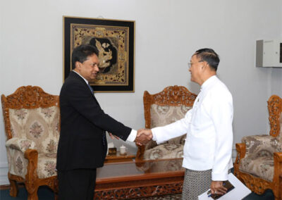 U Ko Ko Kyaw, Deputy Minister for Foreign Affairs receives Dr. Thushara Fernando, WHO Representative to Myanmar