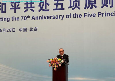 နိုင်ငံတော်သမ္မတ (ငြိမ်း) ဦးသိန်းစိန် တရုတ်ပြည်သူ့သမ္မတနိုင်ငံ၌ ကျင်းပသော ငြိမ်းချမ်းစွာအတူယှဉ်တွဲနေထိုင်ရေးမူကြီး (၅) ရပ် ချမှတ်သည့် နှစ် (၇၀) ပြည့် အထိမ်းအမှတ် အခမ်းအနားတက်ရောက်