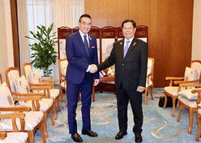 ပြည်ထောင်စုဝန်ကြီးဦးသန်းဆွေ တရုတ်နိုင်ငံခြားရေးဝန်ကြီးနှင့် ထိုင်းနိုင်ငံခြားရေးဝန်ကြီးတို့နှင့်တွေ့ဆုံဆွေးနွေး (၁၄-၈-၂၀၂၅)