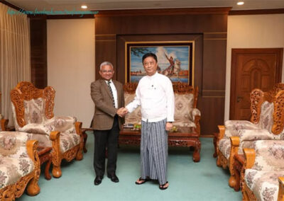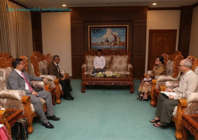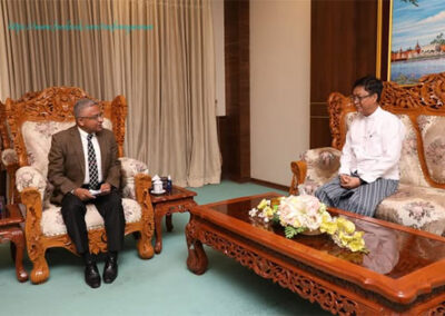 U Lwin Oo, Deputy Minister for Foreign Affairs of the Republic of the Union of Myanmar, received H.E. Mr. Abhay Thakur, Ambassador Extraordinary and Plenipotentiary of the Republic of India to the Republic of the Union of Myanmar, at 1100 hrs on 5 March 2025 at the Ministry of Foreign Affairs in Nay Pyi Taw.