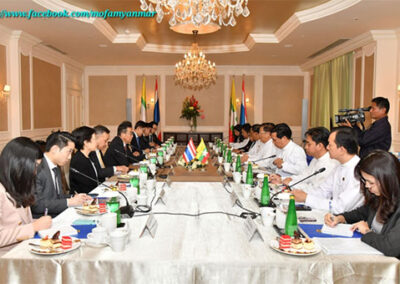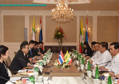During the bilateral meeting, both sides cordially exchanged views on further consolidation of existing bilateral relations and continue enhancement of multi-dimensional cooperation between the two countries, particularly in addressing illegal activities along the borders, such as cross-border illegal trade, drug trafficking, arms smuggling, online fraud, human trafficking, transnational crimes as well as collaborating more closely in regional and international arena. Additionally, the Deputy Prime Minister and Union Minister for Foreign Affairs updated the latest developments in Myanmar including government’s peace efforts and preparations for the upcoming general elections.