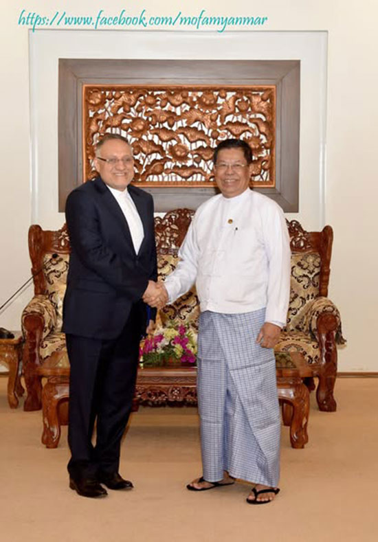 Deputy Prime Minister and Union Minister for Foreign Affairs of the Republic of the Union of Myanmar, received H.E. Mr. Nassereddin HEIDARI, Ambassador Extraordinary and Plenipotentiary of the Islamic Republic of Iran to the Republic of the Union of Myanmar