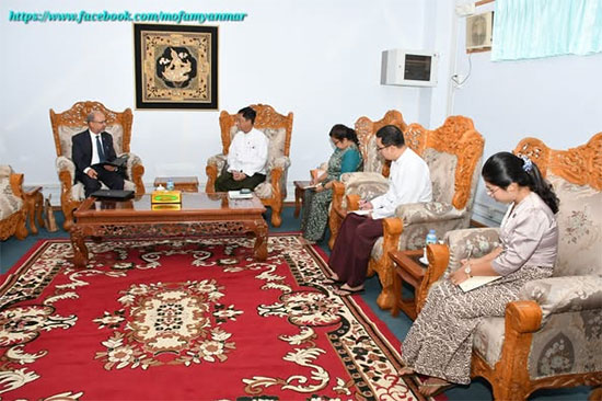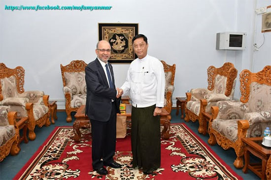 The Deputy Minister for Foreign Affairs of the Republic of the Union of Myanmar, H.E. U Lwin Oo, received the Ambassador Extraordinary and Plenipotentiary of the Federal Democratic Republic of Nepal to the Republic of the Union of Myanmar, H.E. Mr. Harishchandra Ghimire