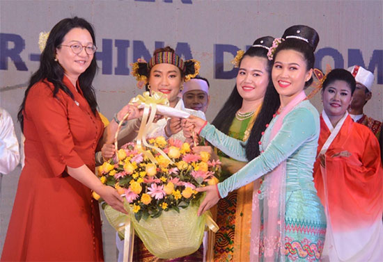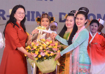At the conclusion of the performances, Deputy Prime Minister and Union Minister for Foreign Affairs U Than Swe, along with the Chinese Ambassador to Myanmar, H.E. Ms. Ma Jia, presented honorary flower bouquet and honorarium to the cultural troupe members and the ceremony was brought to an end.