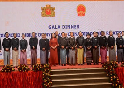 The dinner reception to commemorate the Diamond Jubilee of Myanmar-China Diplomatic Relations was held at the Mingalar Thiri Hotel in Nay Pyi Taw on the evening of 8th June 2025. The reception was attended by the Deputy Prime Minister and Union Minister for the Ministry of Foreign Affairs of the Republic of the Union of Myanmar, Deputy Prime Minister and Union Ministers, Union level dignitaries, Deputy Ministers, Chinese Ambassador to Myanmar, Ambassadors/ Heads of Diplomatic Missions in Yangon, members of the diplomatic corps, officials from the concerned Ministries and invitees.
