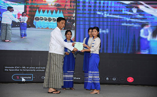 The Closing Ceremony of the Certificate Course in Basic Diplomatic Skills (44/2023), conducted by the Ministry of Foreign Affairs, was held in parallel at the Law Ka Nat hall of the Ministry of Foreign Affairs in Nay Pyi Taw with at the Wunzinminyarzar Hall of the Ministry of Foreign Affairs in Yangon at 10:00 a.m. today. The closing remark was delivered by U Kyaw Myo Htut, Deputy Minister (1) for the Ministry of Foreign Affairs.