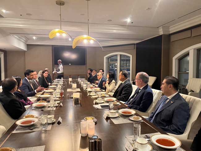 အစည်းအဝေးပြီးနောက် အာဆီယံသံရုံးအကြီးအကဲ များ၏ အလုပ်သဘောညစာစားပွဲကို ဆက်လက်ကျင်းပခဲ့ရာ ကနေဒါအပြည်ပြည်ဆိုင်ရာ ကုန်သွယ်ရေး ဝန်ကြီး H.E Maninder Sidhu က အဓိကဧည့်သည်တော် အဖြစ် ပါဝင်တက်ရောက်ခဲ့ပါသည်။ ညစာစားပွဲတွင် ဝန်ကြီး Sidhu နှင့် အာဆီယံသံရုံး အကြီးအကဲများက အာဆီယံ-ကနေဒါ လွတ်လပ်သော ကုန်သွယ်ရေးသဘောတူညီချက်ရရှိရေး ဆောင်ရွက်နေမှု အခြေအနေများ၊ အာဆီယံ-ကနေဒါ မိတ်ဖက်ဆက်ဆံရေးနှင့် ကုန်သွယ်ရေး ကြံခိုင်မှုစွမ်းအား တိုးမြှင့်နိုင်မည့် အခွင့်အလမ်းများ၊ ကနေဒါနှင့် အာဆီယံအဖွဲ့ဝင်နိုင်ငံ များအကြား ဆက်ဆံရေးဆိုင်ရာ ဖြစ်ပေါ် တိုးတက်မှုအခြေအနေများကို အမြင်ချင်းဖလှယ် ဆွေးနွေးခဲ့ကြကြောင်း သိရှိရပါသည်။ မြန်မာ သံရုံးယာယီ တာဝန်ခံ/ သံအမတ်ကြီး ဦးဇော်ထွန်းဦးသည် မြန်မာနိုင်ငံအပေါ် ကနေဒါနိုင်ငံ၏ သဘောထားအမြင်နှင့် မူဝါဒများကို အပြုသဘောနှင့် ထိရောက်မှုရှိသော လမ်းကြောင်းဖြင့် ပြန်လည်သုံးသပ်နိုင်ပါက ကုန်သွယ်ရေး ပူးပေါင်းဆောင်ရွက်မှုများ ပိုမိုတိုးတက်အောင်မြင် နိုင်မည်ဖြစ်ပြီး လက်ရှိချမှတ်ထားသည့် ပိတ်ဆို့အရေးယူမှုများကို ဖြေလျှော့ပေးပါက စီးပွားရေး ပူးပေါင်းဆောင်ရွက်မှုများကို အပြုသဘောသက်ရောက်စေနိုင်မည် ဖြစ်ကြောင်း၊ မြန်မာနိုင်ငံ ဘက်မှလည်း အာဆီယံ မူဘောင်အတွင်း ဆက်လက်တက်ကြွစွာ ပါဝင်ဆောင်ရွက်သွားမည်ဖြစ် ကြောင်းနှင့် အာဆီယံ–ကနေဒါ လွတ်လပ်သောကုန်သွယ်ရေးသဘောတူညီချက် (FTA) ဆိုင်ရာ ပူးပေါင်းဆောင်ရွက်မှု အပေါ် ကတိကဝတ်ထားရှိမှုကို အလေးအနက် တန်ဖိုးထားရှိကြောင်း ထပ်လောင်းအတည်ပြုခဲ့သည်ဟု သိရှိရပါသည်။
