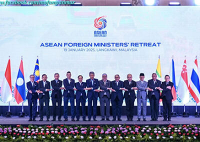 Myanmar Delegation led by Permanent Secretary of the Ministry of Foreign Affairs of the Republic of the Union of Myanmar attended the ASEAN Foreign Minister’s Retreat in Langkawi, Malaysia on 19 January 2025. ASEAN Foreign Ministers from ASEAN Member States and ASEAN Secretary-General attended the said event.