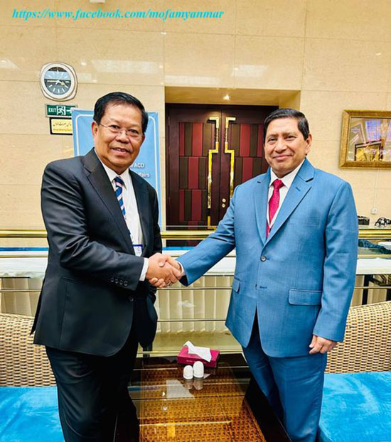 At the meeting with Nepali counterpart, the Deputy Prime Minister and Union Minister for Foreign Affairs U Than Swe congratulated his counterpart on assuming new charge as Deputy Prime Minister and Minister for Foreign Affairs of Nepal. Moreover, both sides cordially exchanged views on strengthening of the existing friendly relations between Myanmar and Nepal, promoting mutually beneficial cooperation in the areas of culture, tourism, trade and investment and collaborating more closely in the international fora.