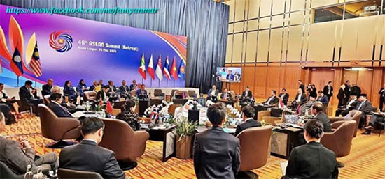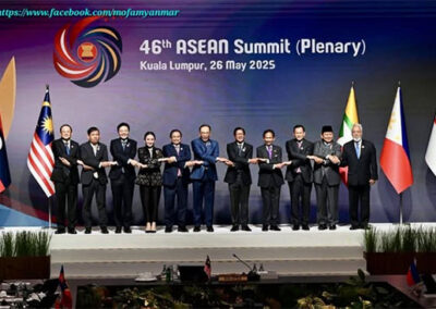 Myanmar Delegation led by the Permanent Secretary of the Ministry of Foreign Affairs of the Republic of the Union of Myanmar attended the 46th ASEAN Summits (Plenary Session) and (Retreat Session) and participated in the ASEAN Leaders’ Interface with Representatives of ASEAN Inter-Parliamentary Assembly (AIPA), ASEAN Leaders’ Interface with Representatives of ASEAN Youth, ASEAN Leaders’ Interface with Representatives of ASEAN Business Advisory Council (ASEAN-BAC) and Signing Ceremony of the Kuala Lumpur Declaration on ASEAN 2045: Our Shared Future, which were separately held in Kuala Lumpur, Malaysia on 26 May 2025.