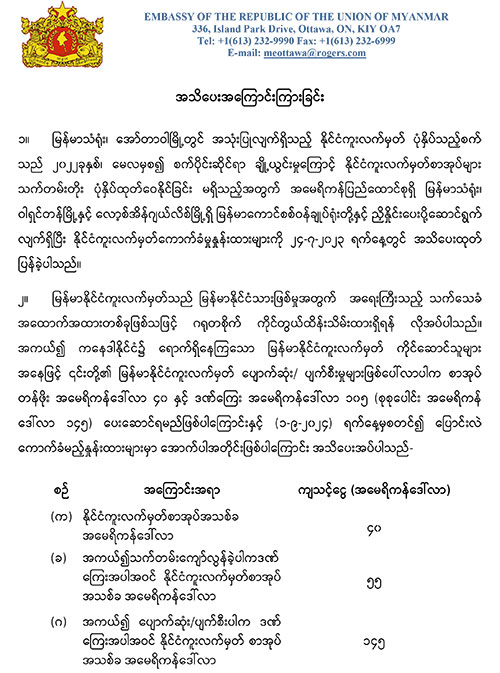 © Copyright 2025 by EMBASSY OF THE REPUBLIC OF THE UNION OF MYANMAR, OTTAWA (CANADA).